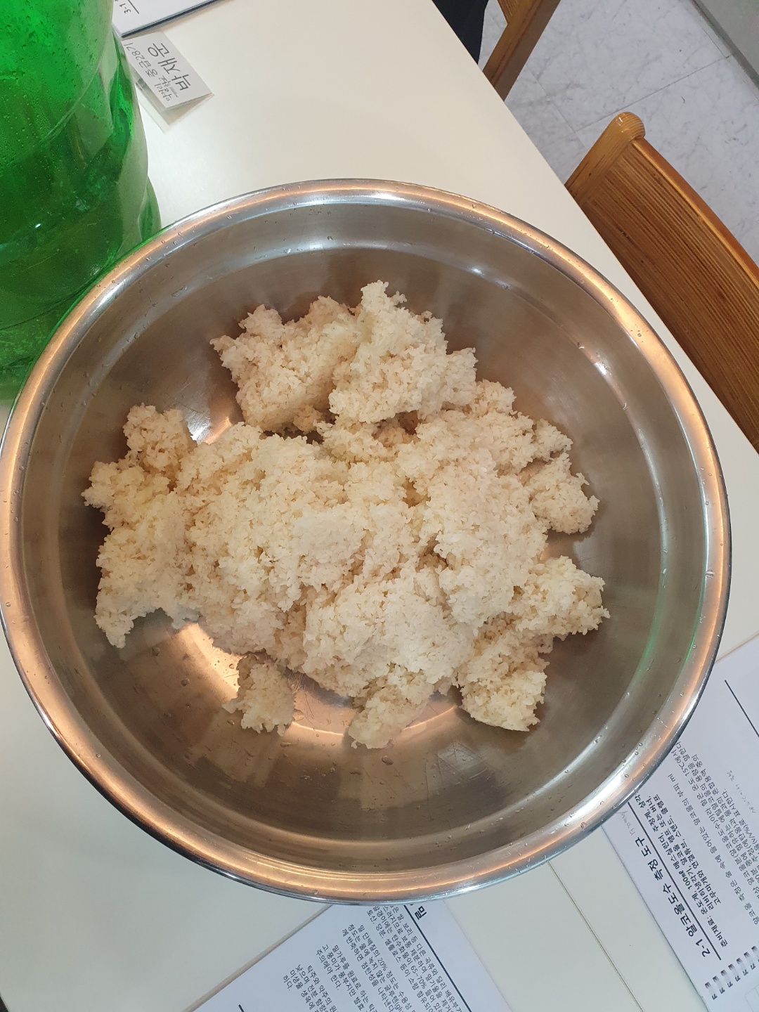4. 치대기 - 고두밥에 누룩과 밑술을 치댑니다.