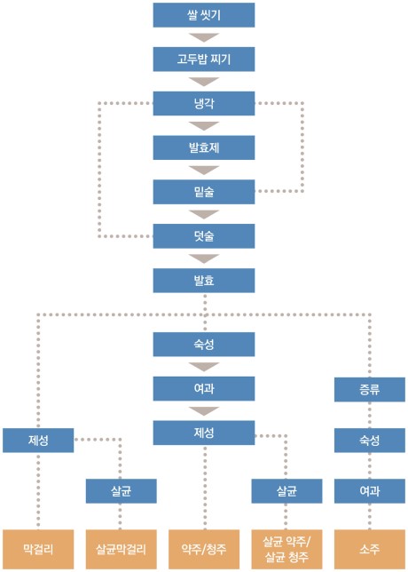 약주의 간략한 제조 공정은 아래에 5번의 절차에 따라서 만들어집니다.