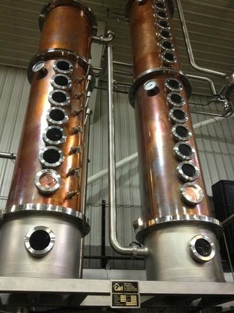 연속식 증류기의 내부에는 여러 개의 단(plate)이 설치되어 있는데, 발효된 술들이 각 단을 흘러 내리면서 응축과 수축을 반복한 후 여러번 증류된 효과가 나기 때문에 술덧만 계속해서 공급된다면 끊임없이 계속 증류를 할 수 있다고 하여 연속식 증류라고 합니다.