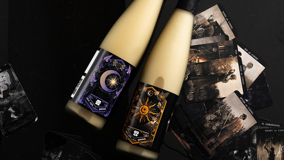 마마스팜은 강원도 홍천에 있는 전통주 양조장으로 22년 8월 칠위드미와 문콕을 함께 제작했었습니다. 그때는 젊은 층을 타겟으로 개성적이고 펑키한 느낌을 강조했다면, 이번에 음양주는 전통적인 막걸리 재료에 동양의 음양설, 서양의 타로점을 섞어서 음과 양이 가지고 있는 속성을 은유적으로 표현하고자 했습니다.