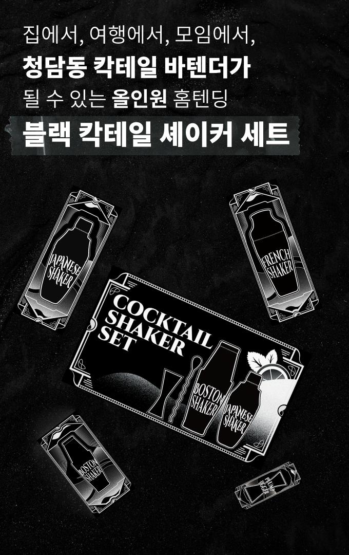 와디즈 오픈예정 | 내 방을 청담동 바(Bar)로 만드는 조주기능사 블랙 칵테일 셰이커 세트